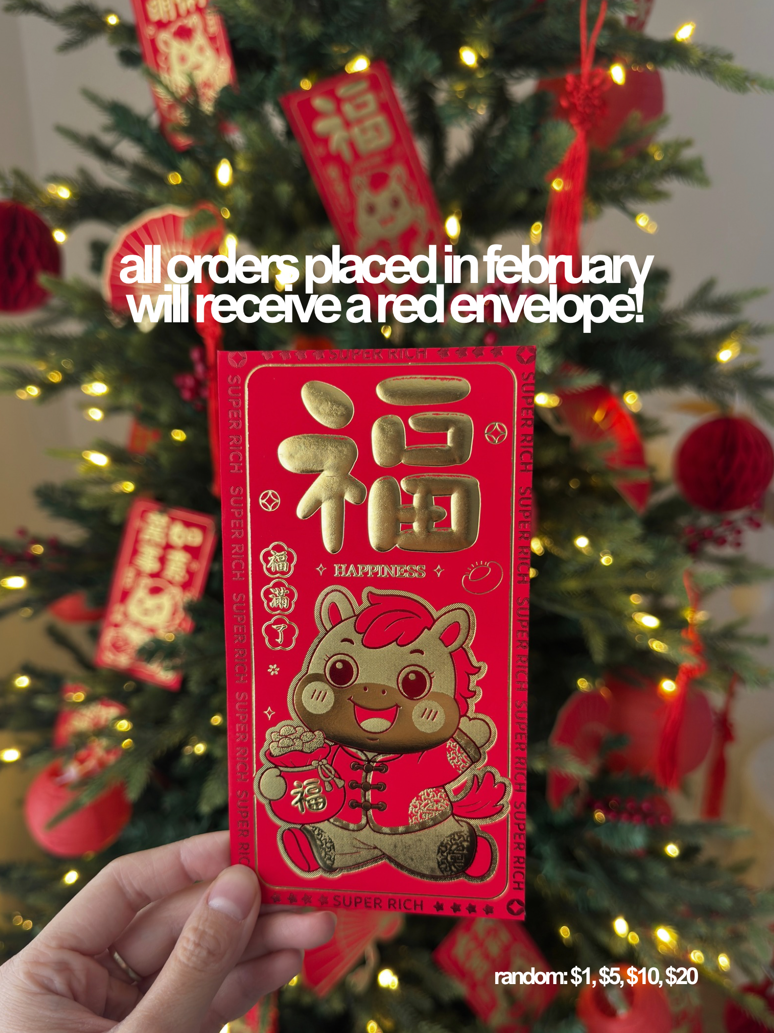 all orders placed this month will receive one! random $1, $5, $10, $20